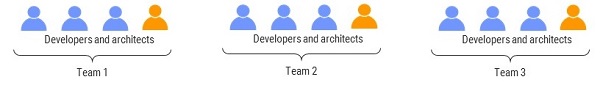 또 다른 방법은 소프트웨어 아키텍트를 그림 4와 같이 개발 팀에 직접 배치하는 것이다.