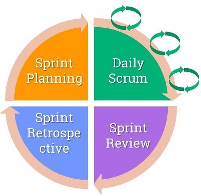 기존의 워터폴 구조는 시작 날짜와 종료 날짜가 명확한 일회성 활동이지만, 애자일 소프트웨어 아키텍처는 진행중인 프로세스이므로 결코 끝나지 않을 수 있다. 이를 통해 필요한 경우 아키텍처 변경 사항을 정기적으로 적용 할 수 있다. 프로젝트의 변화를 환영하는 메커니즘 중 하나는 반복적이고 점진적인 개발을 적용하는 것이다. 스크럼에서는 이러한 반복을 스프린트라고하며 하나의 스프린트는 일반적으로 그림 2에 표시된대로 2-4 주 사이에 지속된다. 이러한 작은 간격을 사용하면 발생하는 모든 변경 사항에 대해 바로 바로 논의 할 것이다. 또한, 팀 협업에 중점을 두고 있으며 오해와 의사 소통이 원활치 않은 것을 방지하며 팀원 간의 문제를 즉시 해결한다.
