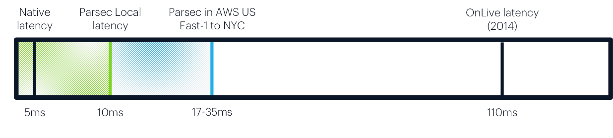 Parsec에서는 20ms으로는 아주 훌륭한 게임 경험을 할 수 있지만 40ms만 되어도 사용할 수 없다고 한다. 이는 WebRTC가 1초 미만의 수백 ms의 요구 사항이었다고 보면 이 요구 사항은 이 보다 한단계 더 낮은 Latency를 요구하는 서비스라고 생각할 수 있다.